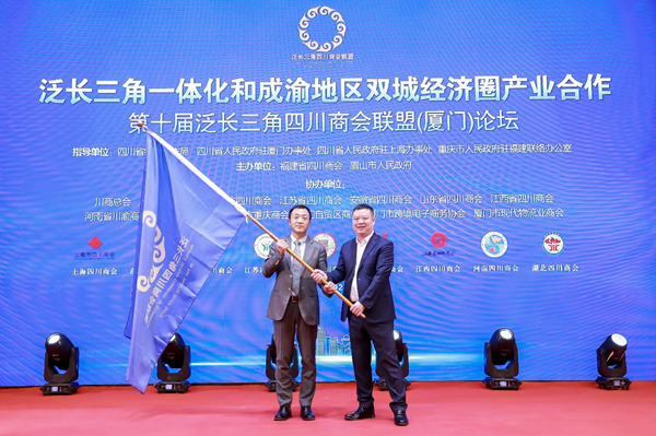 会上,泛长三角四川商会联盟举行了工作交接仪式。福建省四川商会会长宁晓晖从上一届轮值主席单位浙江省四川商会会长何勇手中接过论坛会旗,成为第十届论坛轮值主席。