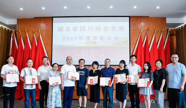 表彰大会由党委副书记王树义主持,全体起立奏唱国歌。随后党委宣传委员张兴忠宣读《中共湖北省四川商会委员会关于“七一”表彰的通报》,大会表彰了3个先进党支部——武汉华天园林集团有限公司党支部、湖北省四川商会家居党支部、武汉仕代环境科技有限公司党支部;10名优秀共产党员:贾绍蔷、陈占、陈香、陈佳丹、刘永辉、王眉、厚杨娜、王霞、方宏国、蒋佑飞。与会党委委员为获奖的组织和个人分别颁发了奖牌和荣誉证书。
