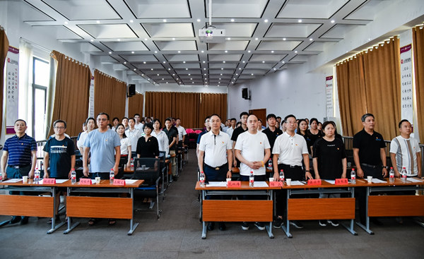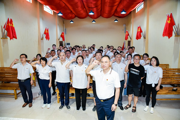面对鲜红的党旗,全体党员整齐列队,庄严地高举右手,在范双涛书记的带领下,重温入党誓词,一字一句铿锵有力,拳拳之心永向党,更加坚定决心,永葆共产党员的政治本色。