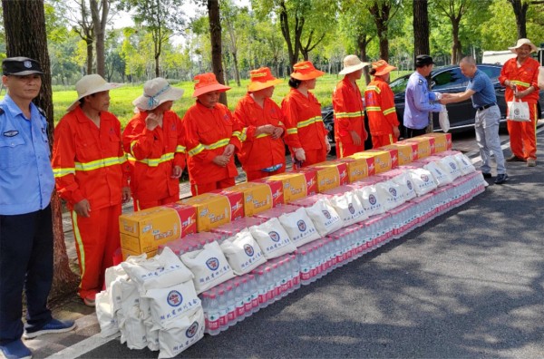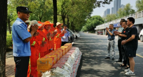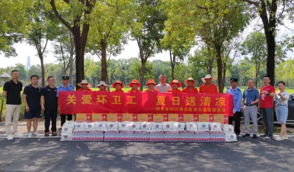 近日持续高温,面对炎炎夏日,8月7日,湖北省四川商会医养大健康委员会开展“关爱环卫工 夏日送清凉”防暑降温慰问活动,为酷暑下仍奋战在一线的环卫工人们送去清凉饮料及防暑降温的生活必需品。