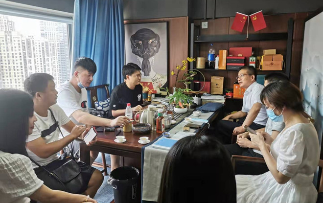 9月8日,湖北省小微企业商会秘书长危俊光、理事李钢、秘书处王欢欢一行人来访,湖北省四川商会青年委员会主任余创,副主任周杰,秘书长王胜吉携会员刘宇杰,徐泽攀、杨小虎、陈义热情接待并座谈交流。